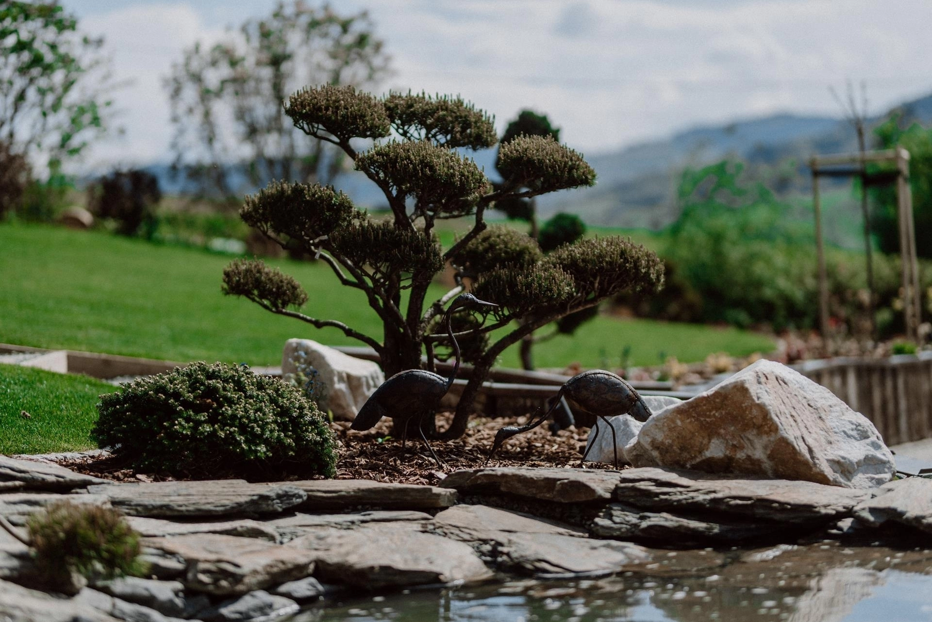 Szelest płynącej wody uspokaja i relaksuje. Ponadto woda przyciąga ptaki i owady dzięki czemu możemy podziwiać piękno natury. W upalne dni obecność wody w ogrodzie daje poczucie świeżości.