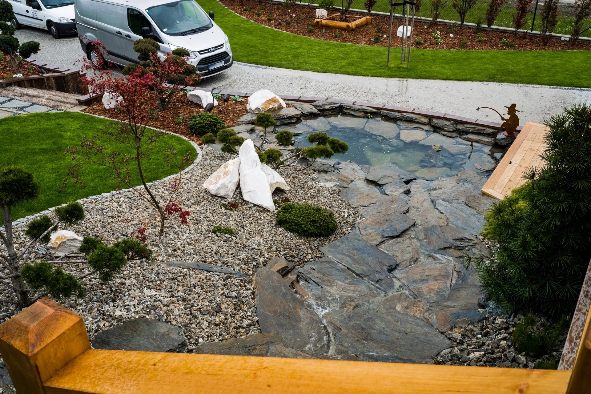 Dla mniejszych obszarów – oczka wodne, strumienie, fontanny, wodospady.