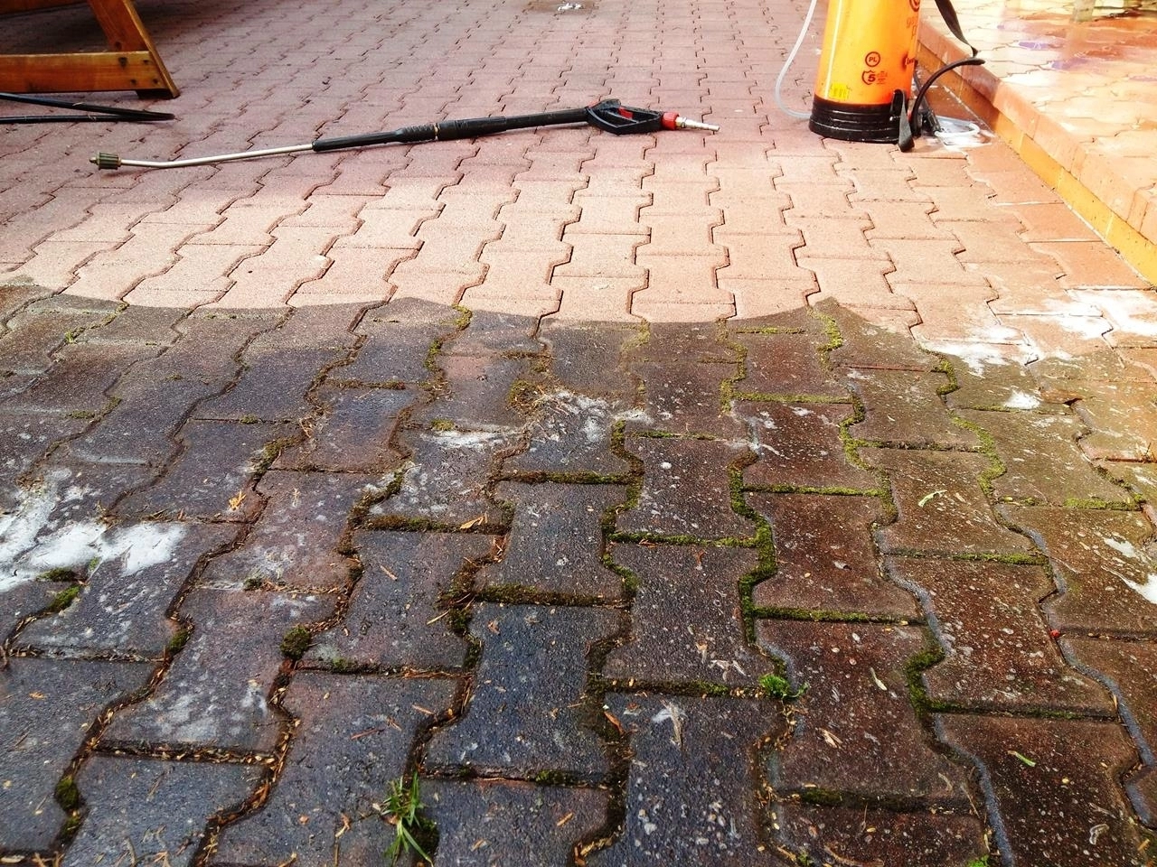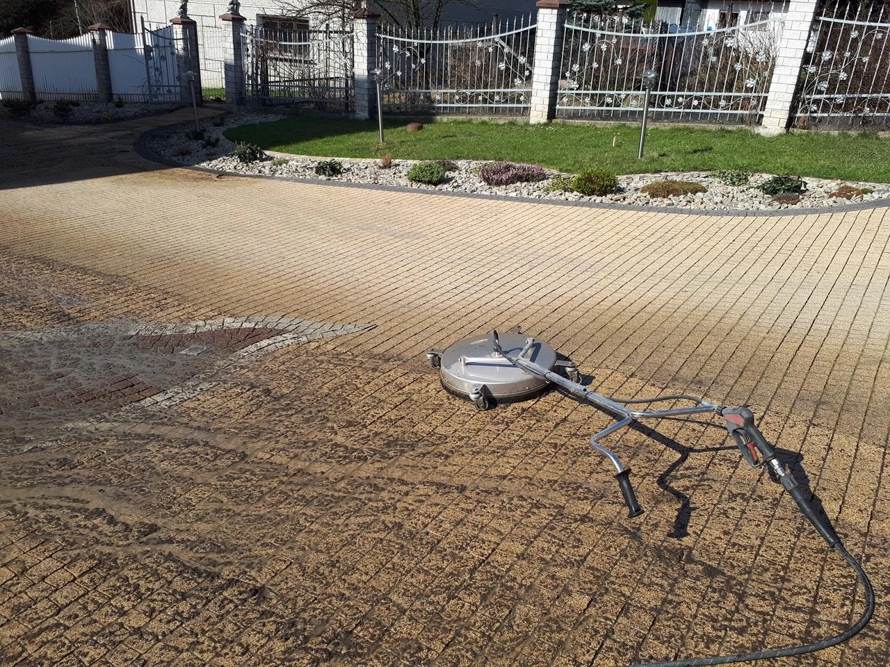 Specjalizujemy się również w myciu wysokociśnieniowym kostki brukowej. Do wykonywania używamy profesjonalnego sprzętu LAVOR . Wysokie ciśnienie ( 230 bar ) poradzi sobie nawet z najcięższymi zabrudzeniami oraz mchem. Usuwamy nawet najcięższe zabrudzenia. Używamy tylko sprawdzonej chemii, nanoszonej pianownicą bądź natryskowo.