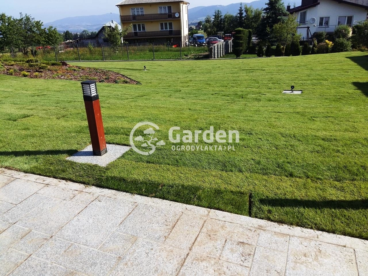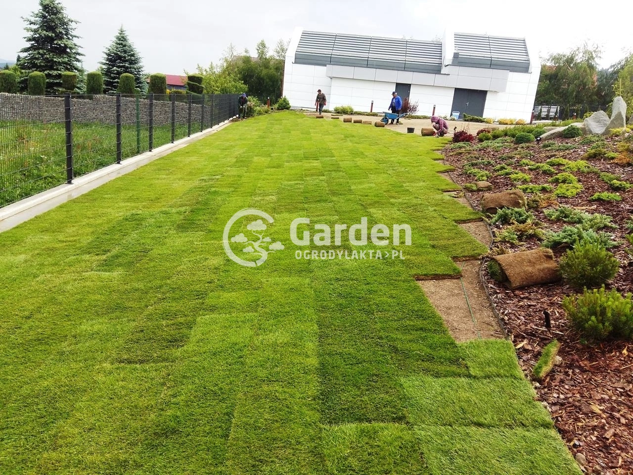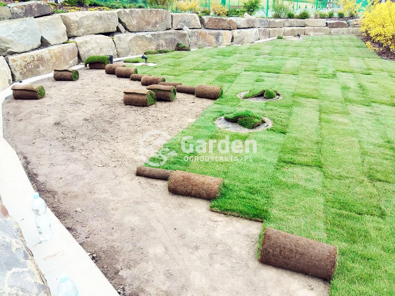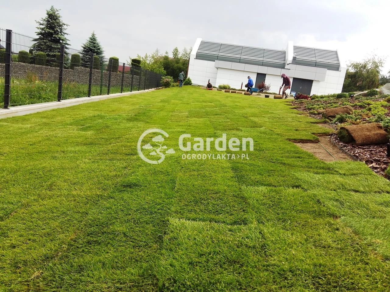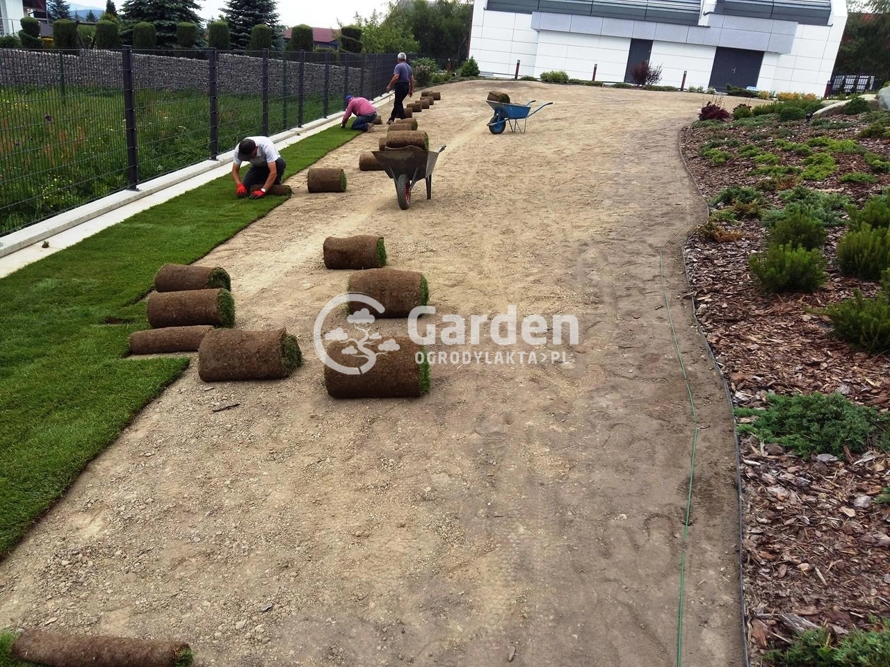 Przejęliśmy zlecenie po innej firmie ogrodniczej z którą inwestor współpracował i nie do końca był zadowolony z jakości wykonywania usługi. Zlecenie polegało na spulchnieniu i wyrównaniu już istniejącej ziemi , montażu kabli instalacyjnych pod robota koszącego HUSQVARNA Automower i oczywiście dostarczeniu i rozłożeniu trawy z rolki . Choć od zakończenia zlecenia minęło już kilka dobry lat to do dzisiejszego dnia pamiętamy tą spiekotę dna i temperatury w okolicach 30’ Celcjusza.