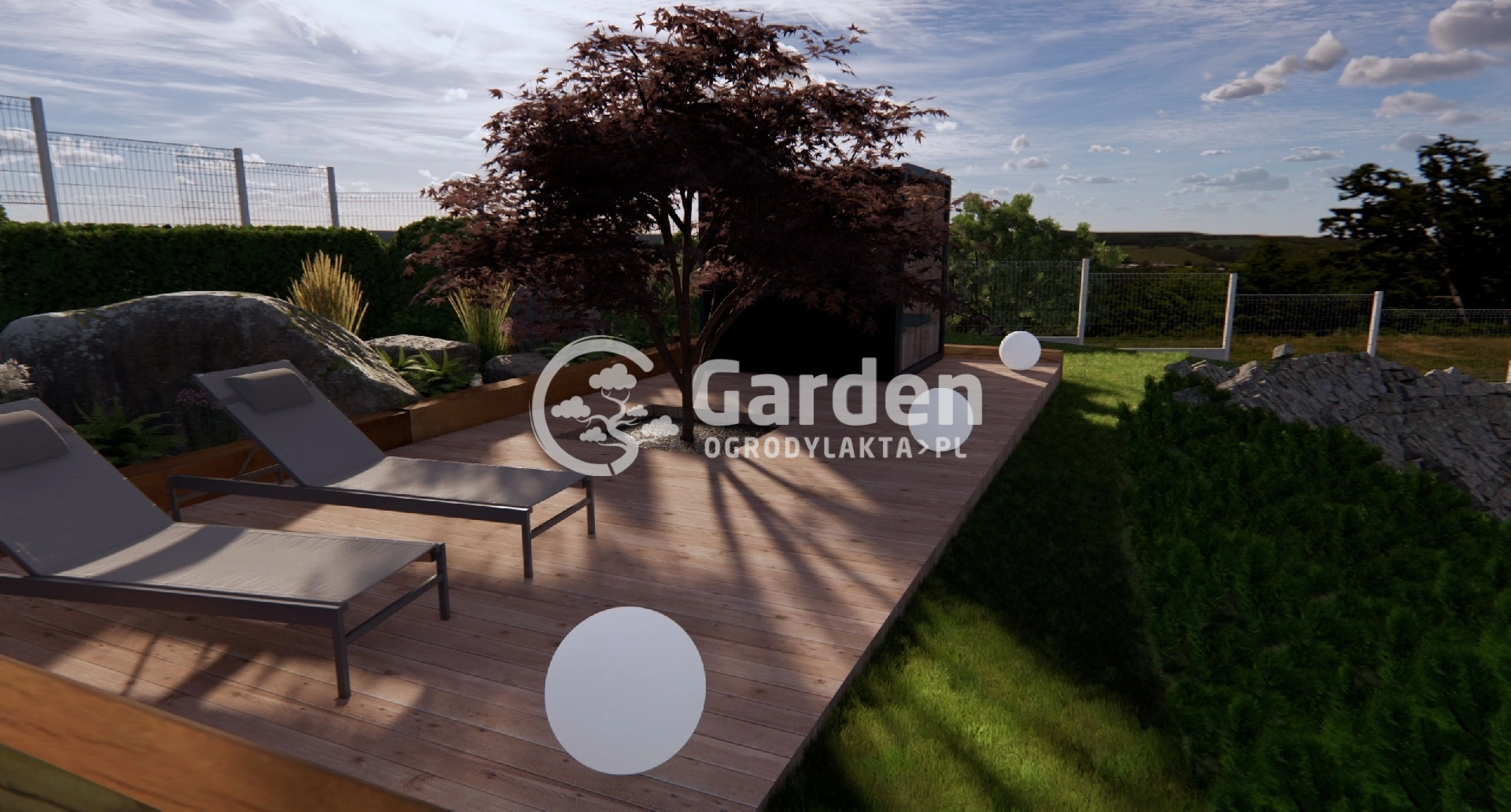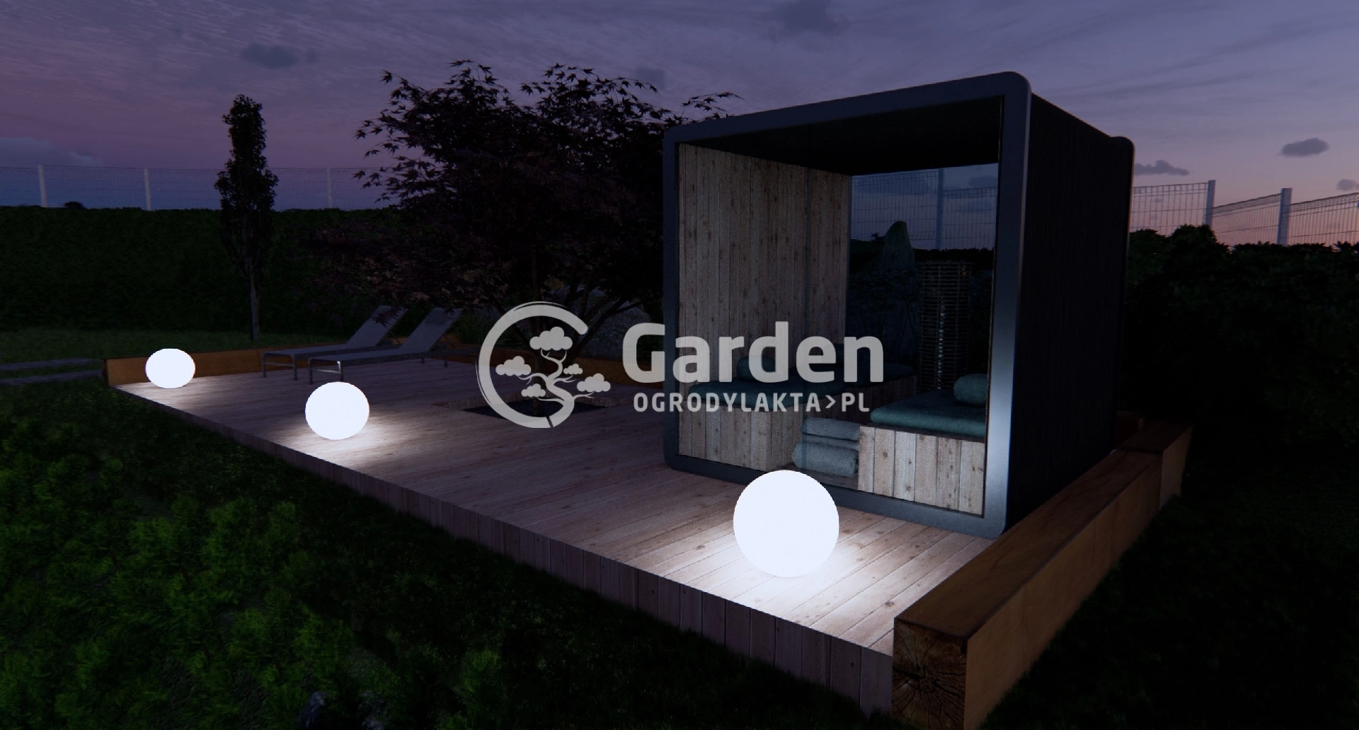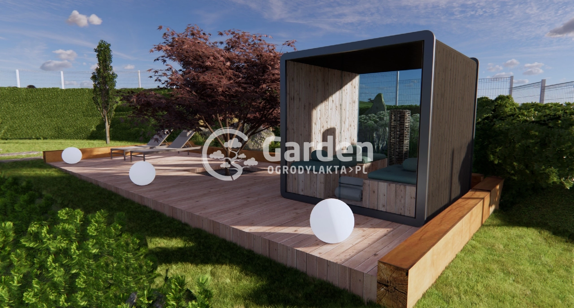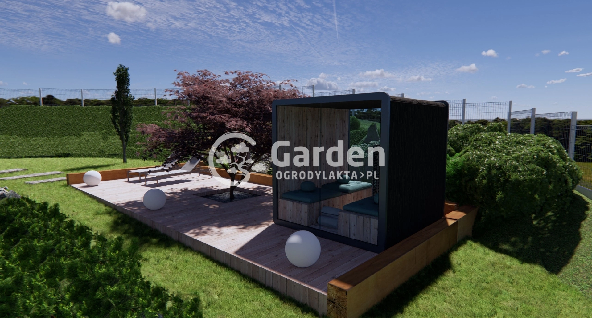 Miejsce relaksu w ogrodzie – taras z sauną